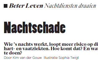 I was interviewed for the Dutch newspaper Volkskrant about the health risks of night shift work and strategies to prevent those adverse effects. You can read the article (in Dutch) here.